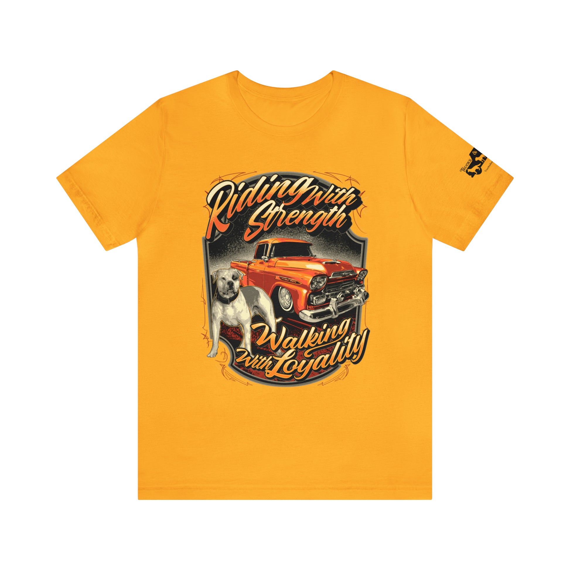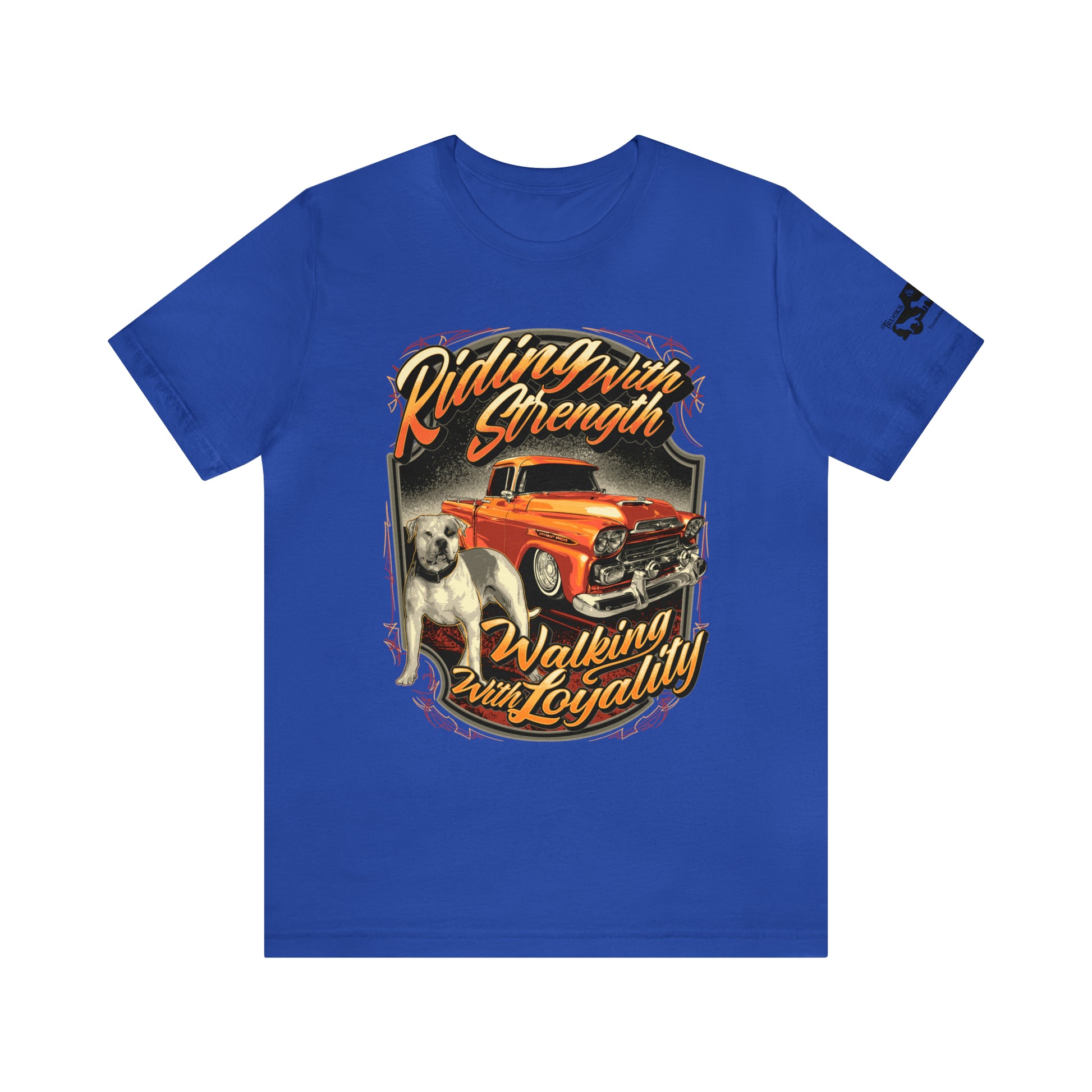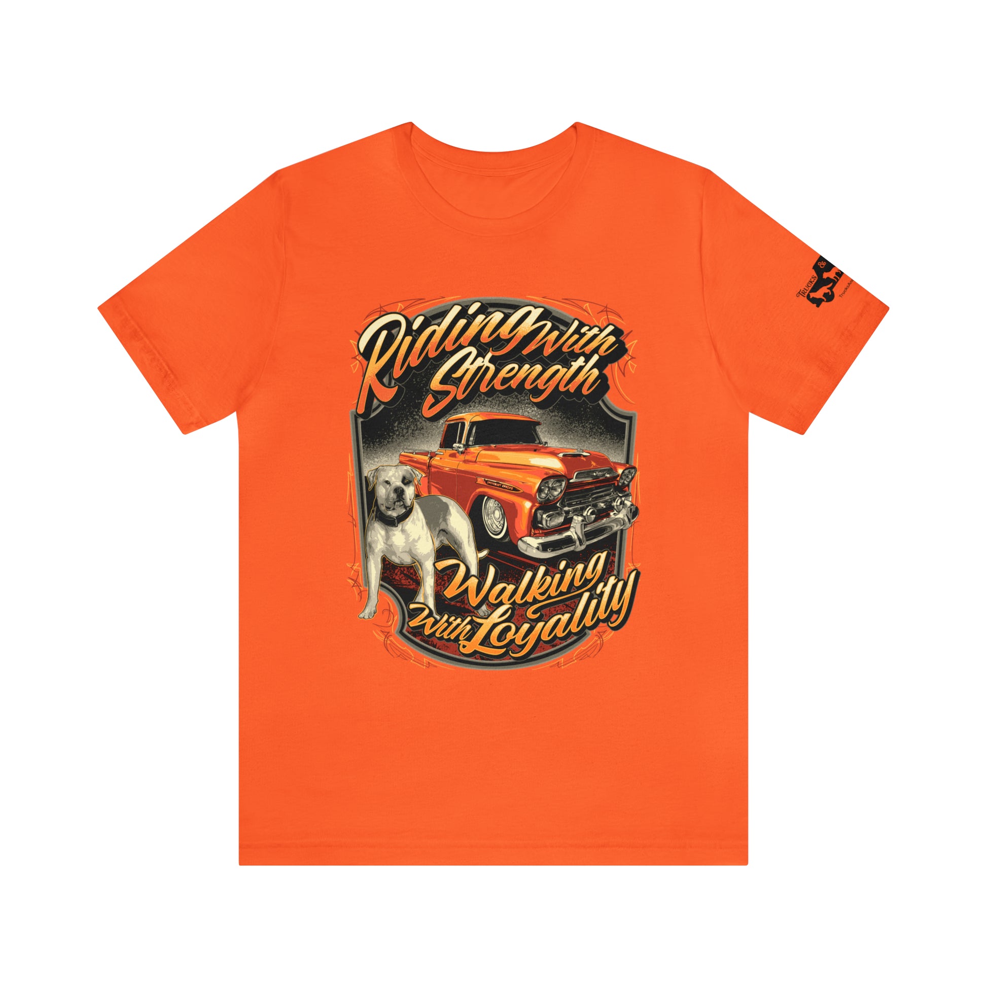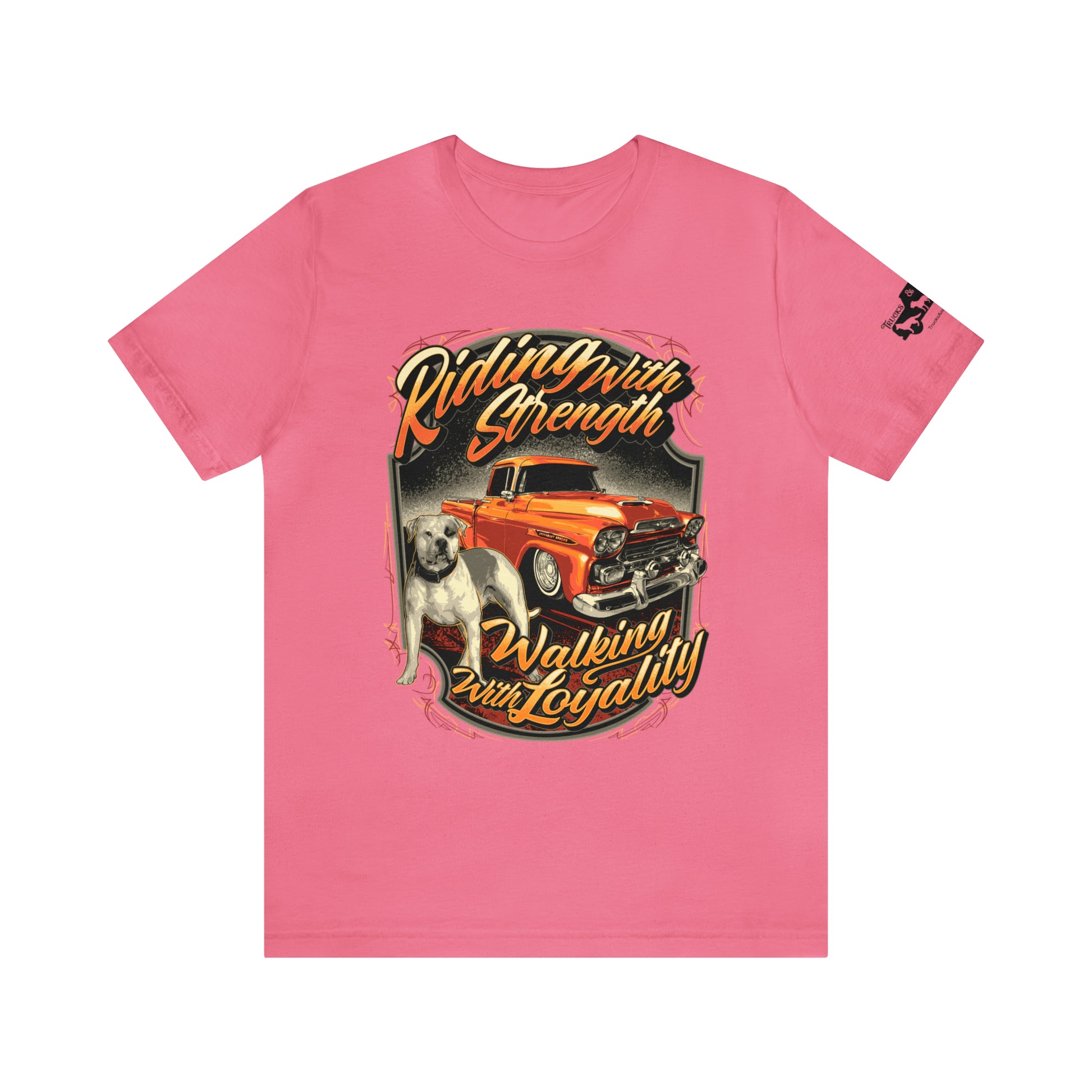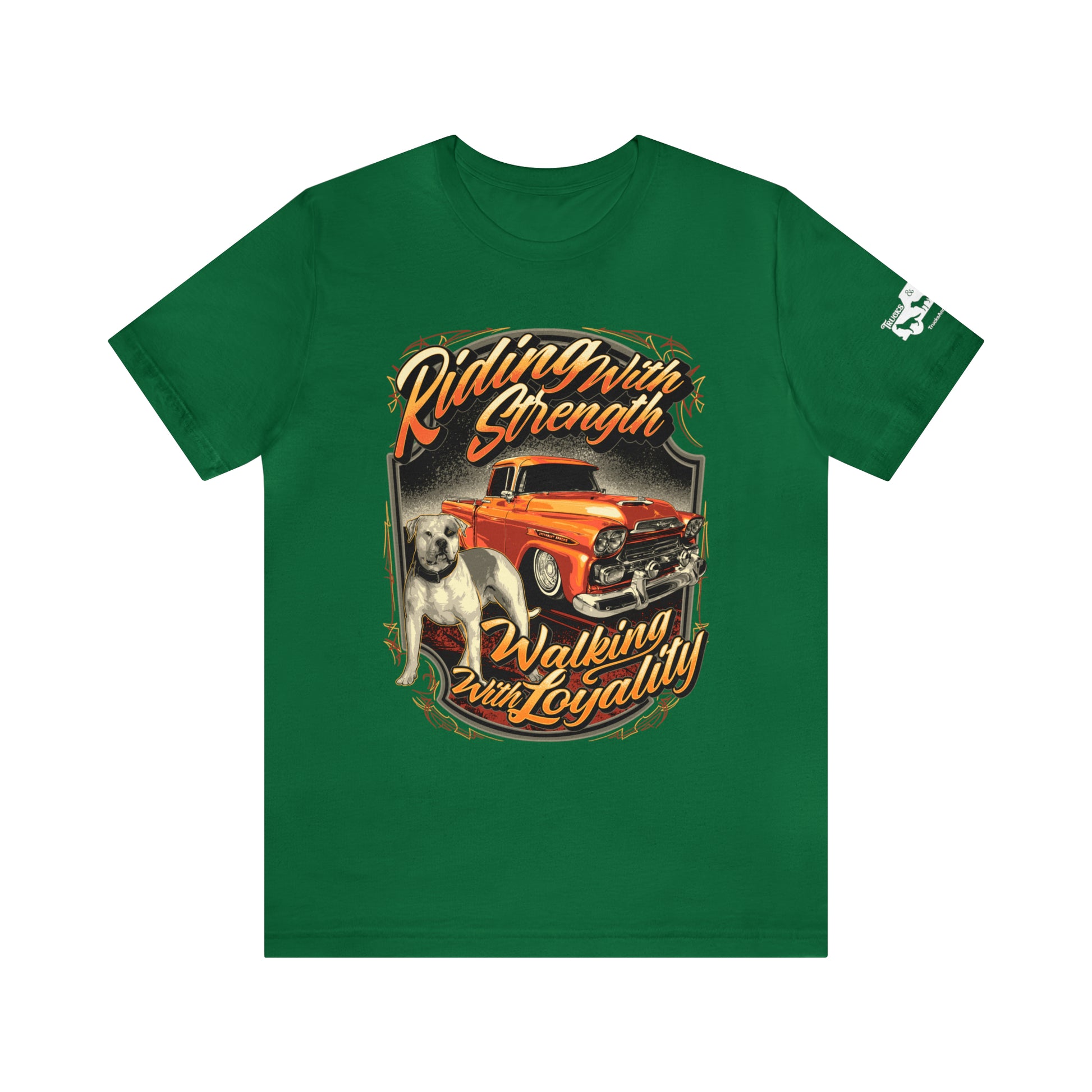 Introducing the first-ever design from our "Trucks And Dogs" apparel line, a spinoff from the iconic BloodDrag collection. Celebrating two of life's greatest joys, trucks and man's best friend, this shirt showcases a beautifully detailed 1959 Chevy Apache pickup truck alongside a proud and powerful American Bulldog. It's the perfect ensemble for those who appreciate the classic lines of vintage trucks and the unwavering loyalty of our canine companions.