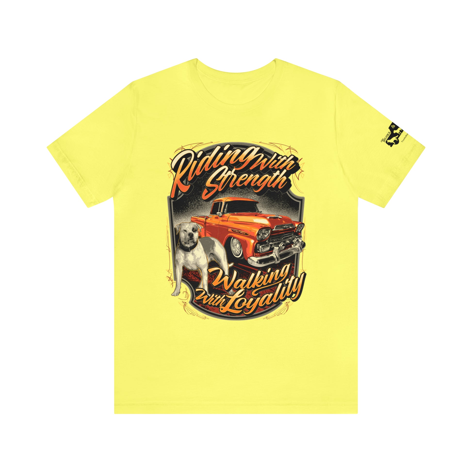 Got an idea for a truck and dog pairing? We want to hear from you! Use the contact form to submit your suggestions. Whether it's a combination you'd love to see, a specific breed, or a classic truck you adore, your insights will be invaluable as we chart the course for "Trucks And Dogs." Dive into this blend of automotive and canine love, and wear your passions with pride!This classic unisex jersey short sleeve tee fits like a well-loved favorite. Soft cotton and quality print make users fall in love with it over and over again. These t-shirts have-ribbed knit collars to bolster shaping. The shoulders have taping for better fit over time. Dual side seams hold the garment's shape for longer.